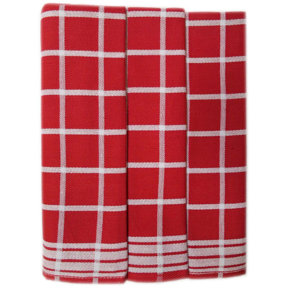 Souprava tří kusů kuchyňských utěrek z exkluzivní egyptské bavlny v rozměru 50x70cm v červené barvě se vzorem kára.