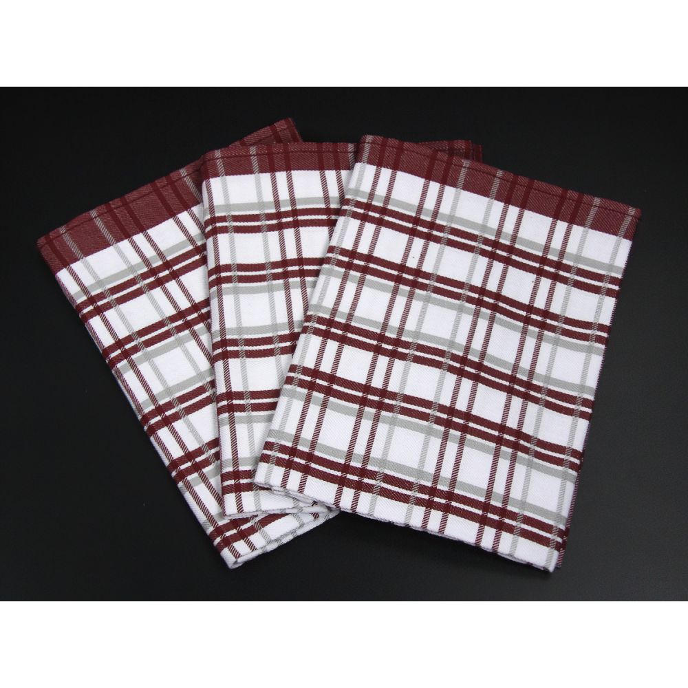 Souprava tří kusů kuchyňských utěrek z exkluzivní egyptské bavlny v rozměru 50x70cm ve vínovo bílé barvě se vzorem kára.