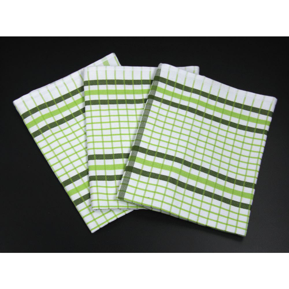 Souprava tří kusů kuchyňských utěrek z exkluzivní egyptské bavlny v rozměru 50x70cm v zeleném provedení se vzorem kára a proužků.
