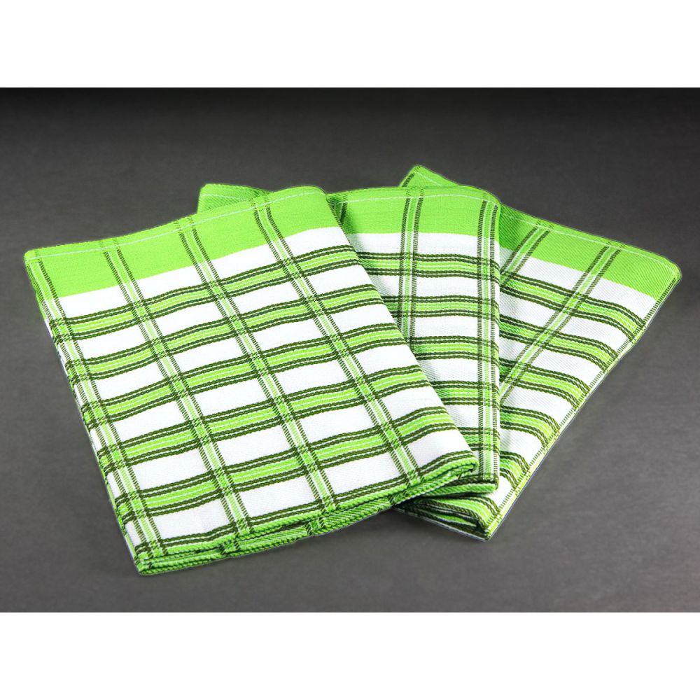 Souprava tří kusů kuchyňských utěrek z exkluzivní egyptské bavlny v rozměru 50x70cm v zelené barvě v provedení se středně velkým kárem.