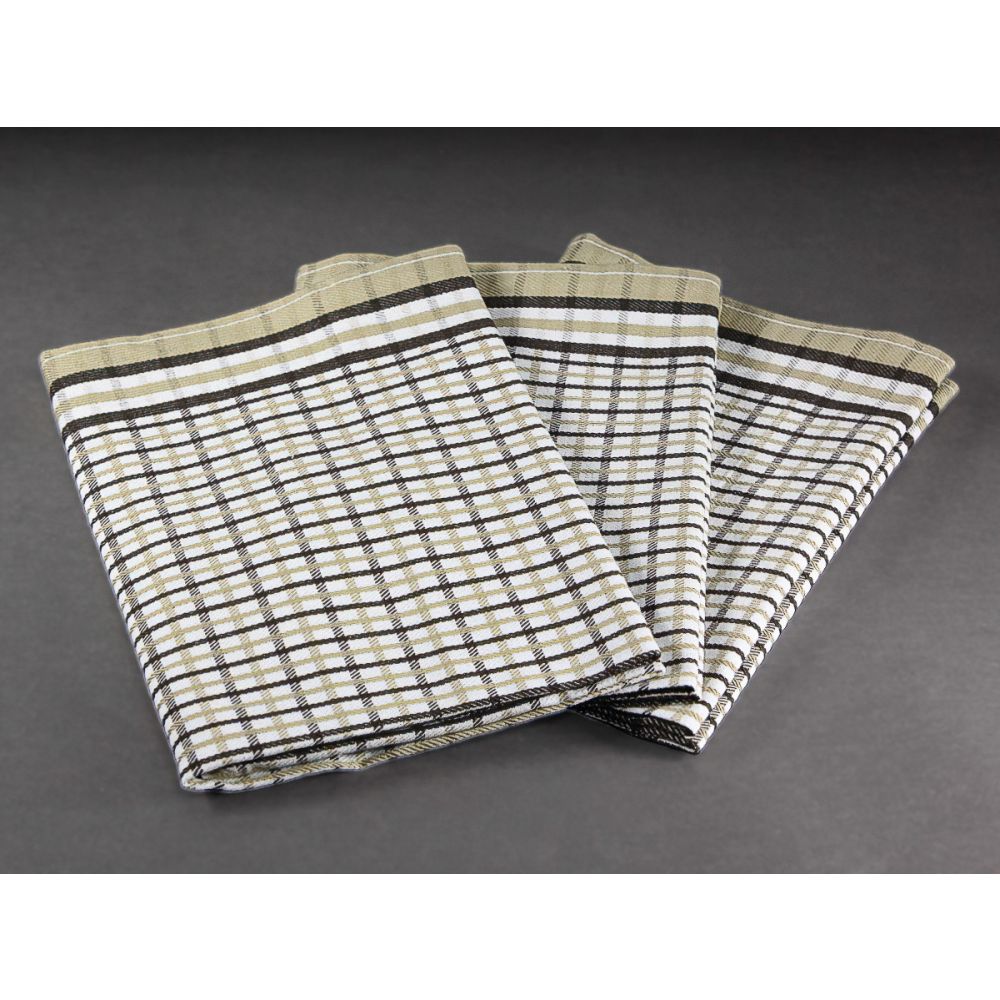 Souprava tří kusů kuchyňských utěrek z exkluzivní egyptské bavlny v rozměru 50x70cm v hnědé barvě v provedení s drobným kárem.