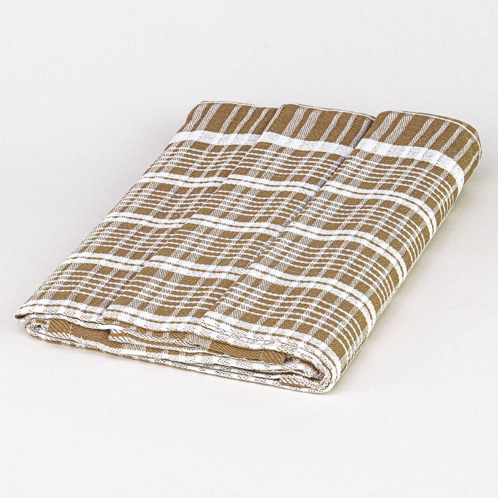 Souprava tří kusů kuchyňských utěrek z exkluzivní egyptské bavlny v rozměru 50x70cm s světle hnědým kárem.