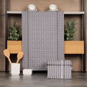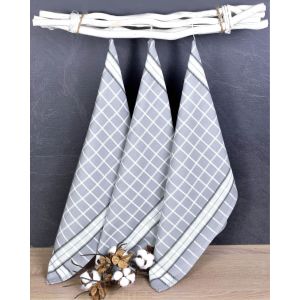 Souprava tří kusů kuchyňských utěrek z exkluzivní egyptské bavlny v rozměru 50x70cm se vzorem šedého kára a ornamentů na bílém podkladu. Utěrky z egyptské bavlny jsou vyrobeny z kvalitní bavlněné příze s vysokou gramáží 245g/m2. Balení obsahuje 3 utěrky.