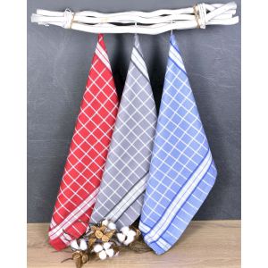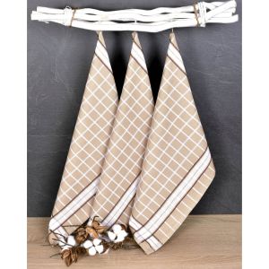 Kuchyňské utěrky EGYPTSKÁ BAVLNA SOLE GREY, šedo-bílé káro s ornamenty, 3 kusy, 50x70cm
