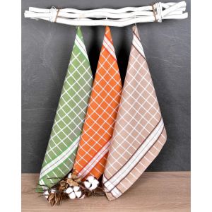 Souprava tří kusů velmi kvalitních kuchyňských utěrek z egyptské bavlny s vysokou gramáží 245 g/m2. Díky použití egyptské bavlny jsou utěrky vysoce savé, měkké a mají dlouhou životnost. Delší vlákna egyptské bavlny přispívají k větší pevnosti tkaniny. To znamená, že utěrky z egyptské bavlny jsou odolnější vůči roztrhání a opotřebení. Kombinace barev a krásný vzor je vhodný pro každou moderní kuchyni.