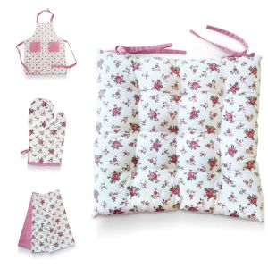 Kuchyňský set Vám pomůže zútulnit kuchyni a sjednotit tak všední a přesto důležité věci jako jsou utěrky, chňapky, sedáky či prostírání. Doporučujeme prát vše na 30°C, nebělit a nesušit v sušičce.