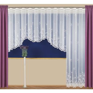 Hotová jemná žakárová záclona se vzorem připomínajícím trsy trávy a listů v jednobarevné bílé barvě. Záclona je vyrobena ze 100% polyesteru v různých výškách a šířkách. Záclona má z výroby pevné boční i horní okraje, bez řasící stužky. Výška záclony je měřena v nejdelším místě.