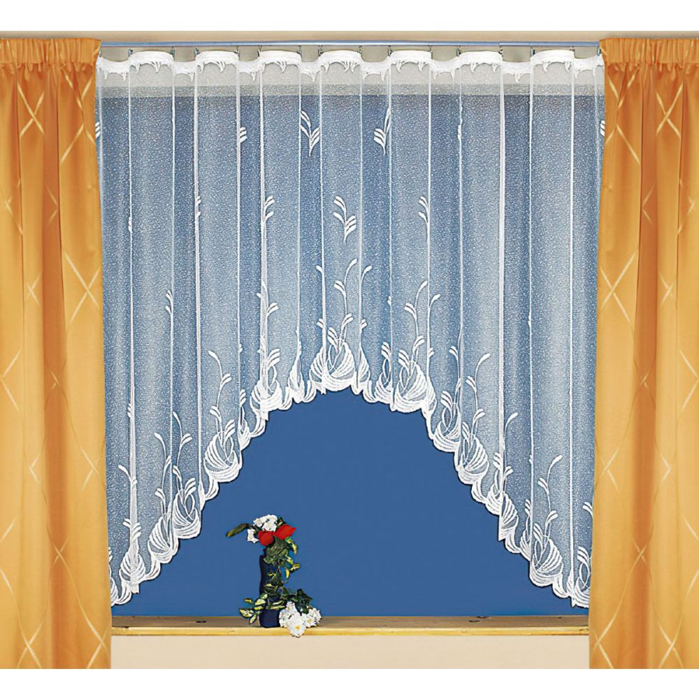 Hotová jemná žakárová záclona se vzorem drobných větviček v jednobarevné bílé barvě. Záclona je vyrobena ze 100% polyesteru ve výšce 180 cm a šířce 400 cm. Záclona má z výroby pevné boční i horní okraje, bez řasící stužky. Výška záclony je měřena v nejdelším místě.