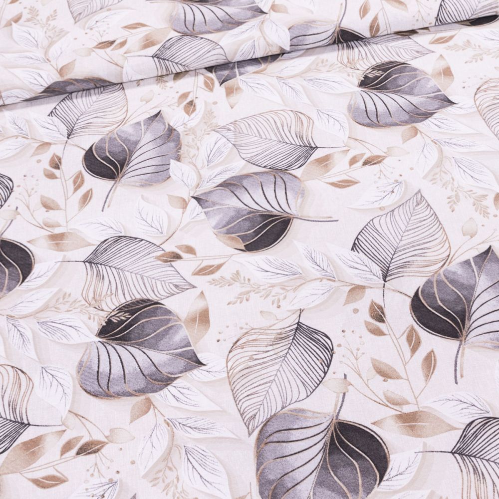 Směsové plátno LONETA, šedo-hnědé listy, š.140cm (látka v metráži)