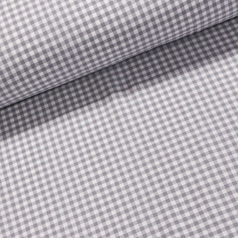 Pravý bavlněný šedý čtverečkovaný kanafas. Látka je v šířce 140 cm, vyrobena ze 100% bavlny (gramáž 140g/m2) v plátnové vazbě. Vzor látky je vytkávaný je tedy z obou stran stejný.