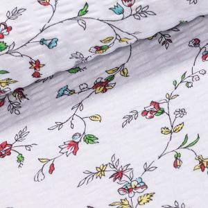 Vitrážová záclona, polyesterový batist, madeira V291, vyšívané květy, s bordurou, bílá (více výšek, v metráži)