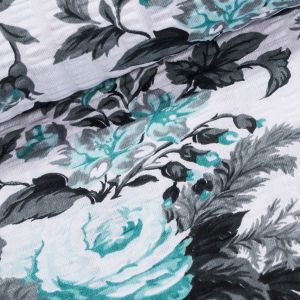Košilovina bavlněná, mušelín tisk 3119/01, růžovo-fialové květy na šedé š.140cm (látka v metráži)