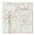 Froté ručník MONA, béžový s vytkávaným květinovým vzorem, 50x100cm