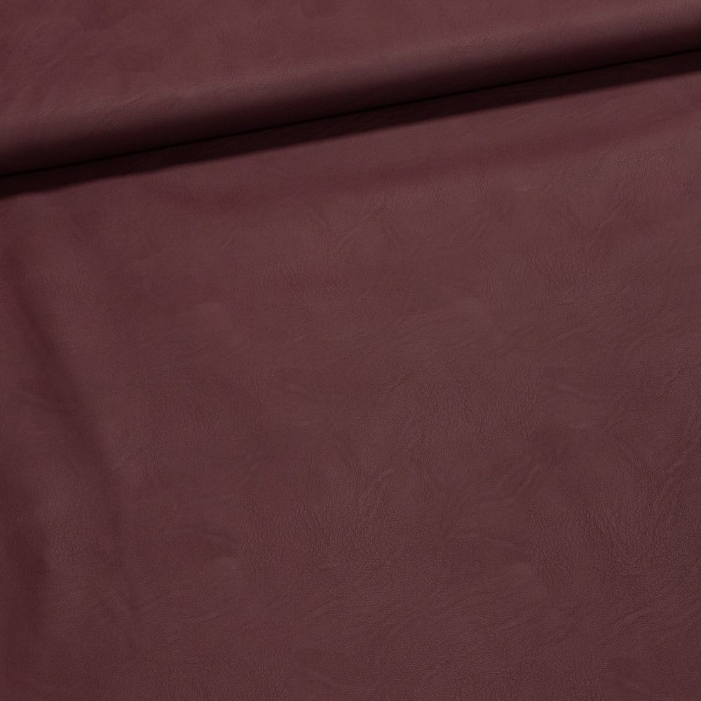 Umělá koženka ve vínové barvě. Umělá kůže je v šířce 140 cm a je vyrobena ze 97% polyesteru a 3% elastanu. Tato koženka je v měkkém jemném provedení a díky elastickému úpletu z rubové strany je vhodná na oděvy jako jsou kalhoty, sukně, saka či bundy.