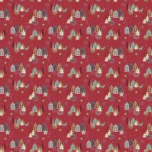 - Ubrus PVC s textilním podkladem vánoční 6378-04, vánoční zlatá vesnička na červené, š.140cm (metráž)127 Kč