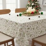 Ubrus PVC s textilním podkladem vánoční N5R/01 šišky na krémovém pozadí s vločkami, š.140cm (metráž)