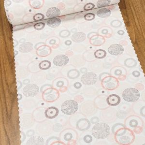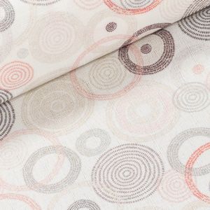- Ubrusovina / štola teflonová úprava, lososovo-béžové kruhy na smetanové, š.38cm (metráž)100 Kč