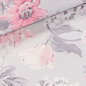 - Ubrusovina / štola teflonová úprava, růžové květy na šedé, š.38cm (metráž)100 Kč
