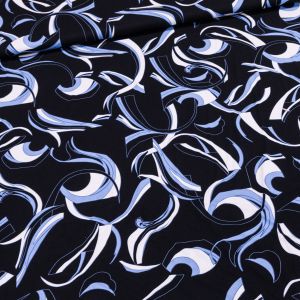 - Viskózový úplet 18413/104, modrý ornament na černé, š.150cm (látka v metráži)369 Kč