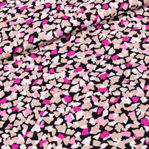 - Viskózový úplet 268, růžovo-bílo-béžové střípky na černé, š.175cm (látka v metráži)Regular Price 391 Kč Zlevněná / akční cena 264 Kč