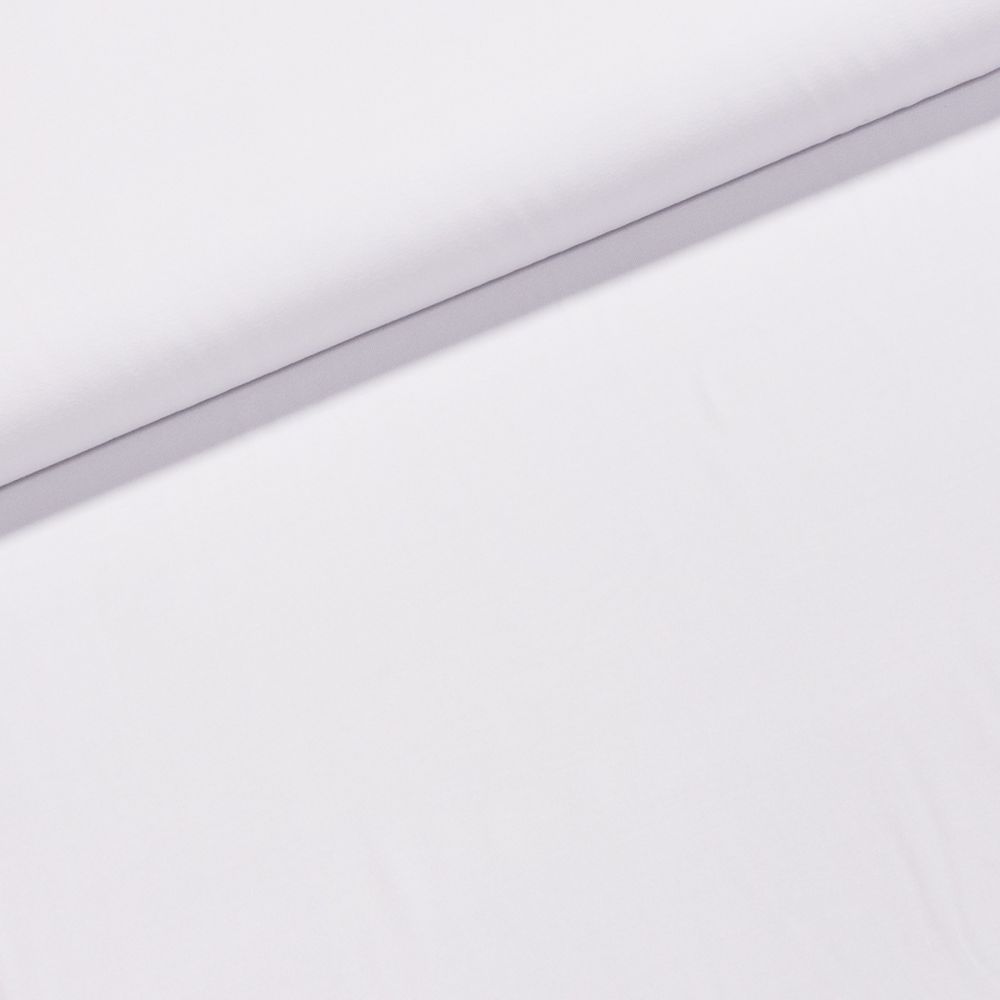 Elastický úplet (jersey) jednobarevný v bílé barvě. Úplet je zejména vhodný na lehká trička, šaty, kardigany či kraťasy. Látka je v šířce 145 cm, vyrobena z 95% modalu a 5% elastanu (gramáž 215g/m2) je to přírodní, moderní velmi příjemný materiál. Látka je z obou stran stejná.