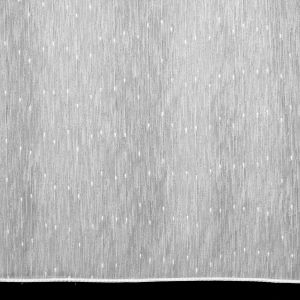 Organzová metrážová záclona jemná se žakarovým vzorem prší v bílé barvě, zakončená zátěžovým olůvkem. Záclona je vyrobena ze 100% polyesteru a je dostupná v různých výškách. Výška záclony je měřena v nejdelším místě.