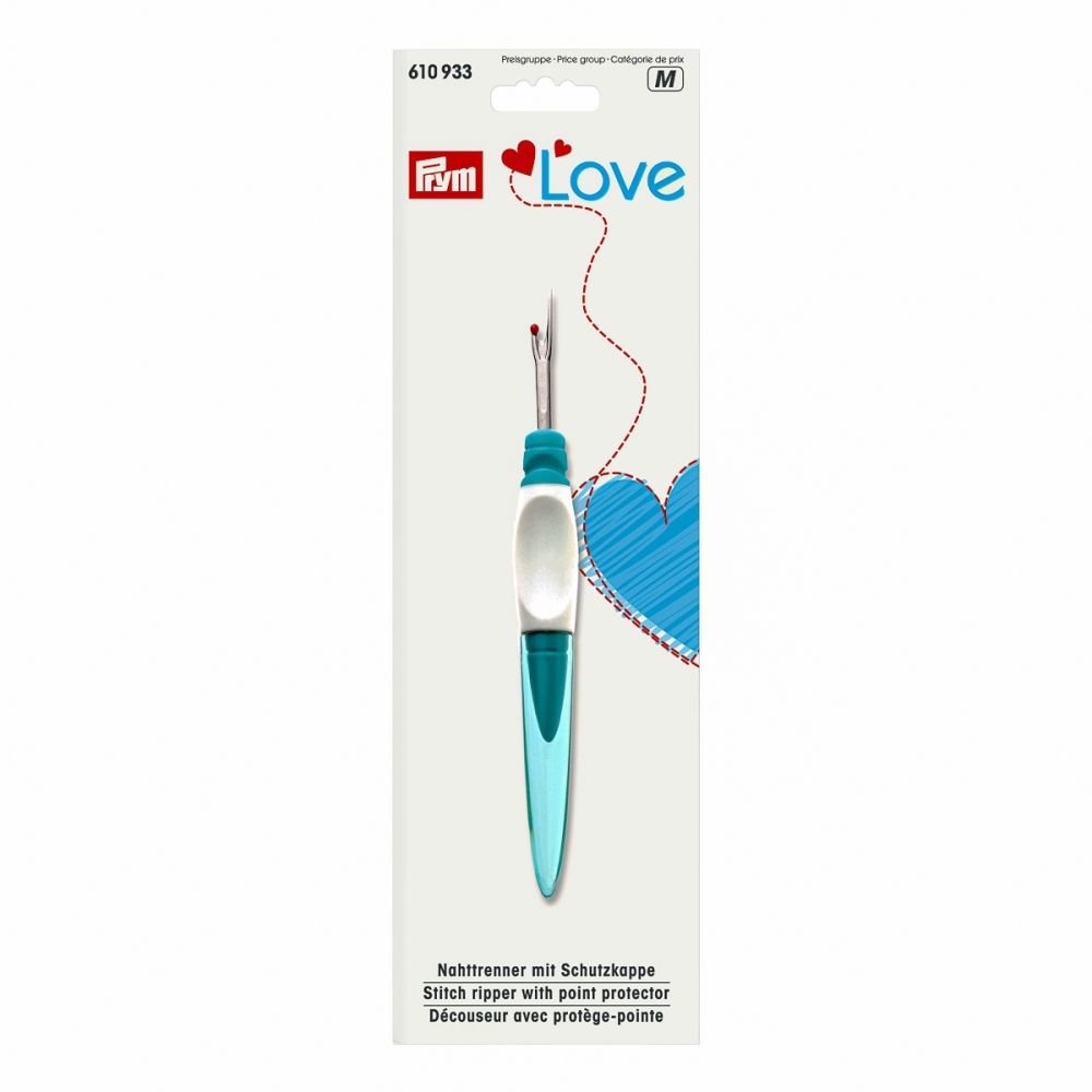 Krejčovské ergonomické páradlo (páráček) z kolekce PRYM LOVE na párání švů. Lze jej použít i pro řezání knoflíkových dírek. Díky tomu je práce s látkami rychlá. Páráček je ostrý a vyrobený v kombinaci kovu a plastu. Je opatřen bezpečnostním plastovým krytem, který lze nasadit na konec jako uzávěr plnicího pera a tím prodlužuje rukojeť. Vhodný pro praváky i leváky