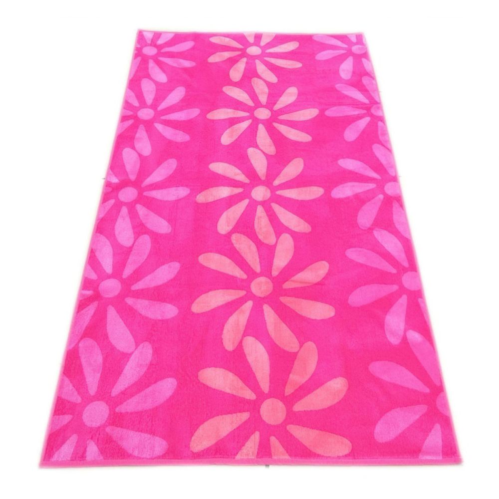 Plážová osuška RŮŽOVÉ KVĚTY froté, 100x160cm