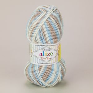 Akrylová pletací příze (100% akryl) v modro-bílém melírovaném provedení. Příze je zcela hladká, jemná a je vhodná jak pro pletení tak i háčkování. Je vhodná pro hladké i složitější a náročnější vzory. Úprava Anti-Pilling vhodná pro děti. Doporučená velikost jehlic a háčku 3,5 mm a 4,5 mm.