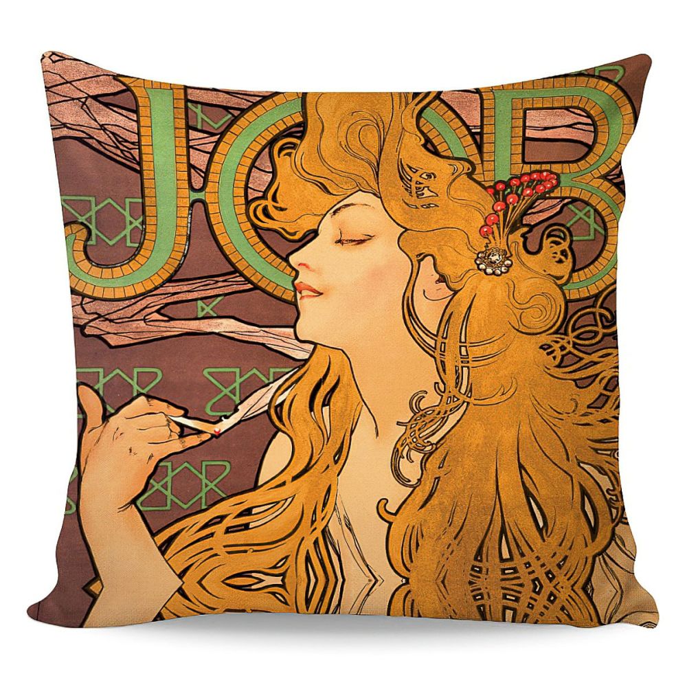 Polštářek ALFONS MUCHA JOB, hnědý, 40x40cm