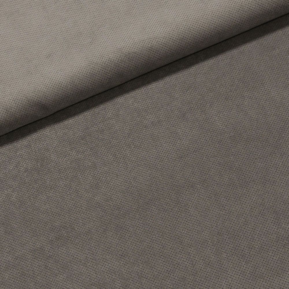 Potahová látka je tkaná v jednobarevné šedé barvě. Látka je na dotek jemná, v metráži v šířce 145 cm a vyrobena ze 100% polyesteru (345 g/m2).