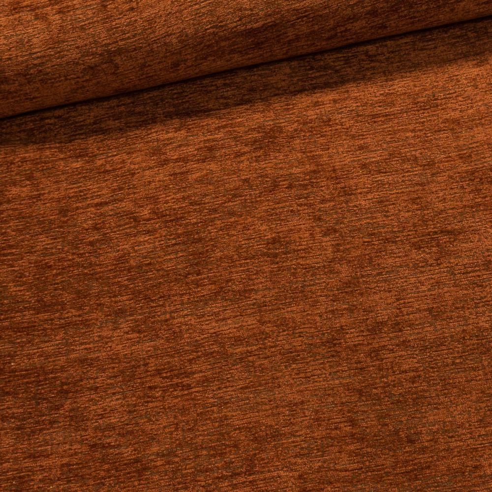 Potahová látka je tkaná žinylkovou přízí v rezavé žíhané barvě. Potahovka je v šířce 140 cm a je vyrobena ze 100% polyesteru (gramáž 345g/m2). Látka je jemná a je jednolící.