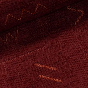 Potahová látka se vzorem kostek na tmavě oranžovém podkladu. Potahovka je v šířce 140 cm a je vyrobena ze 100% polyesteru (gramáž 345g/m2). Látka je jednostranná.