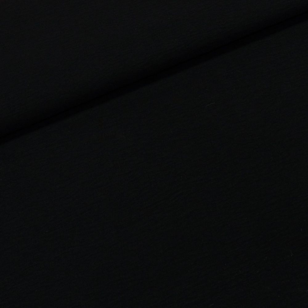 Směsová látka (šatovka) v jednobarevné černé barvě v krešovaném provedení. Šatovka je v šířce 1407 cm a je vyrobena ze 60% viskózy, 35% bavlny a 5% elastanu (gramáž 130g/m2). Látka je vhodná na kardigany, kostýmky, tuniky, halenky, šaty, sukně či kalhoty. Látka je z obou stran stejná.