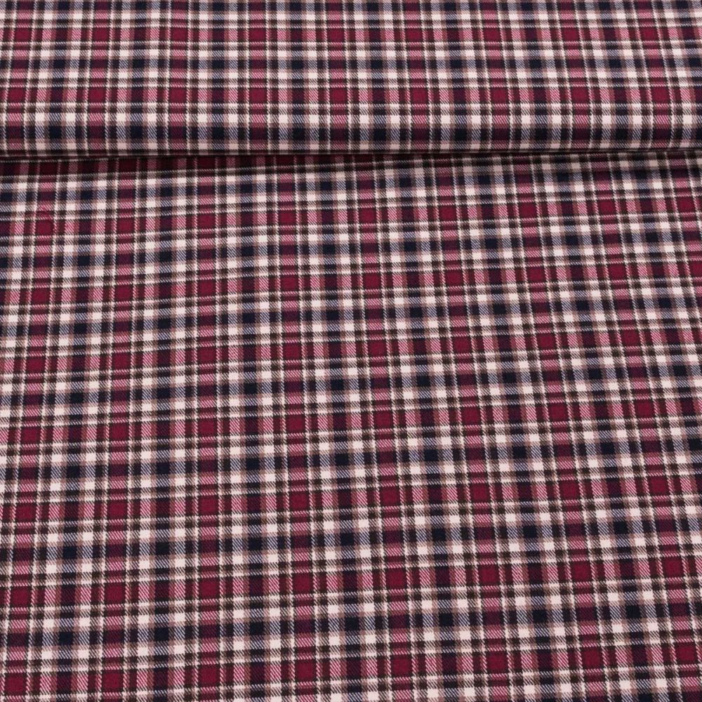 Šatovka směsová TARTAN 55023, vínovo-béžové káro, š.140cm (látka v metráži)