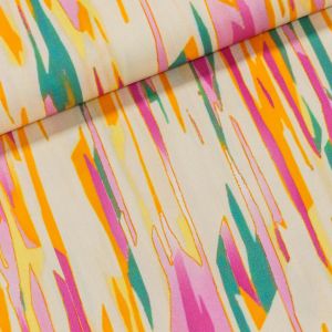 Viskózová látka (šatovka) látka je vhodná na letní kostýmky, tuniky, halenky, topy, šaty, sukně či kalhoty. Lze prát na 40°C v pračce, nežehlivý materiál, nesmí se sušit v sušičce.