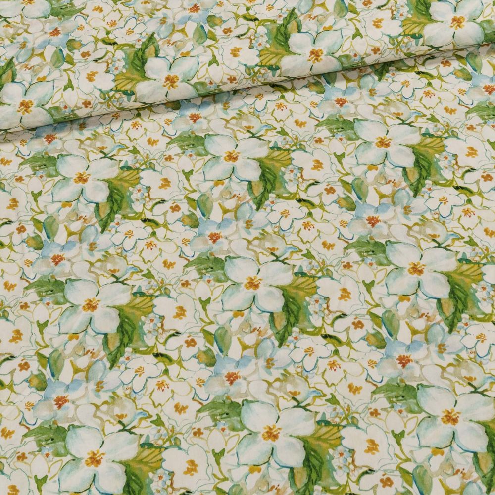 Šatovka viskózová 5342-001, zelené květiny, š.142cm (látka v metráži)
