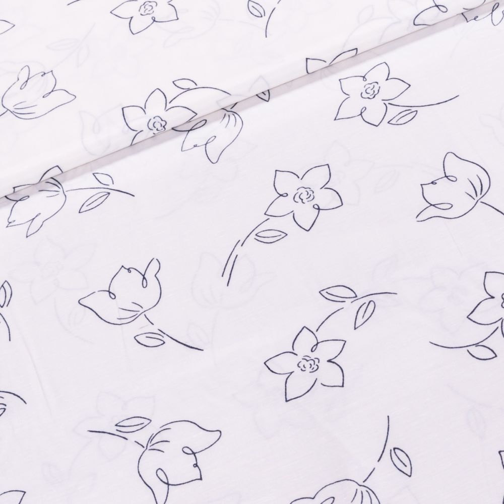 Šatovka viskózová, perokresba květy na bílé, š.140cm (látka v metráži)