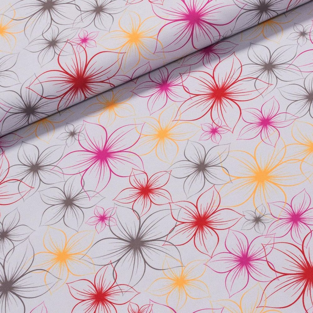 Slunečníkovina/kočárkovina OXFORD 013-1 květy na světle šedé, š.160cm (látka v metráži) lze zakoupit pouze v násobcích 0.05