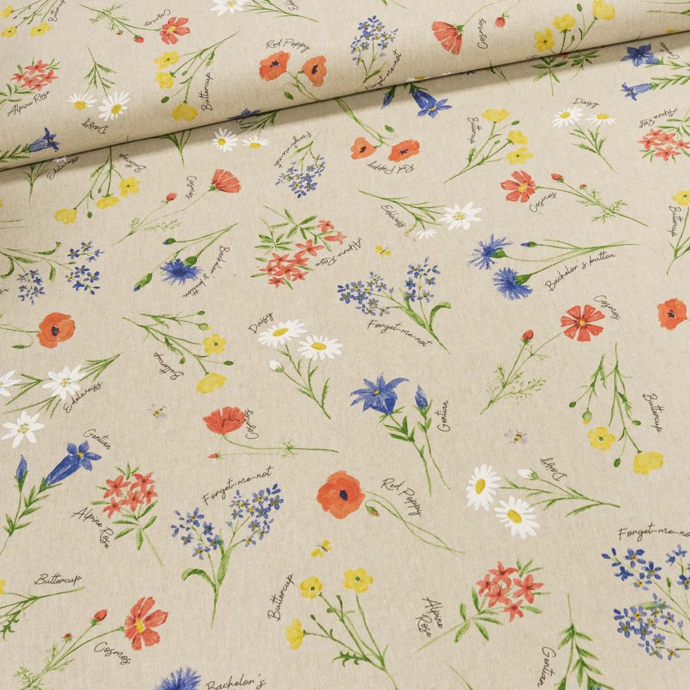 Směsové plátno 104530.2122.655, luční květiny na režné, š.140cm (látka v metráži)