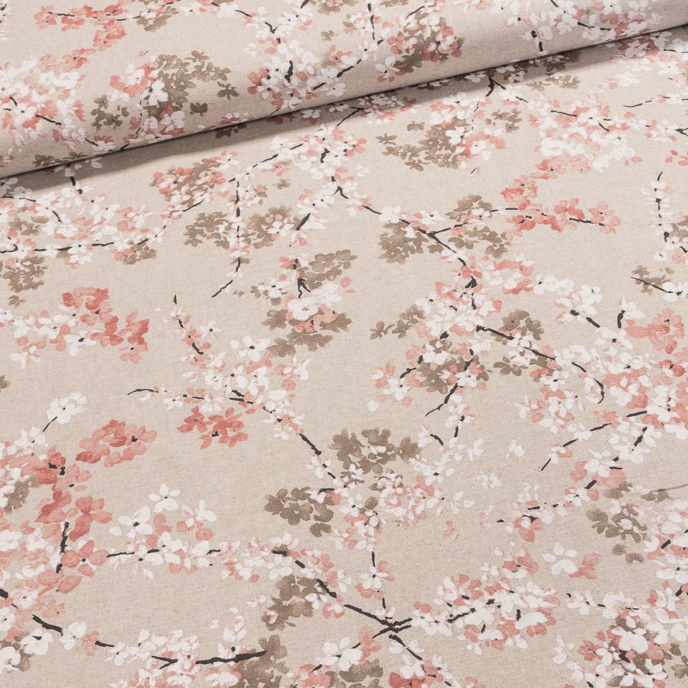 Směsové plátno 30622/1205 třešňový květ na režné, š.140cm (látka v metráži)
