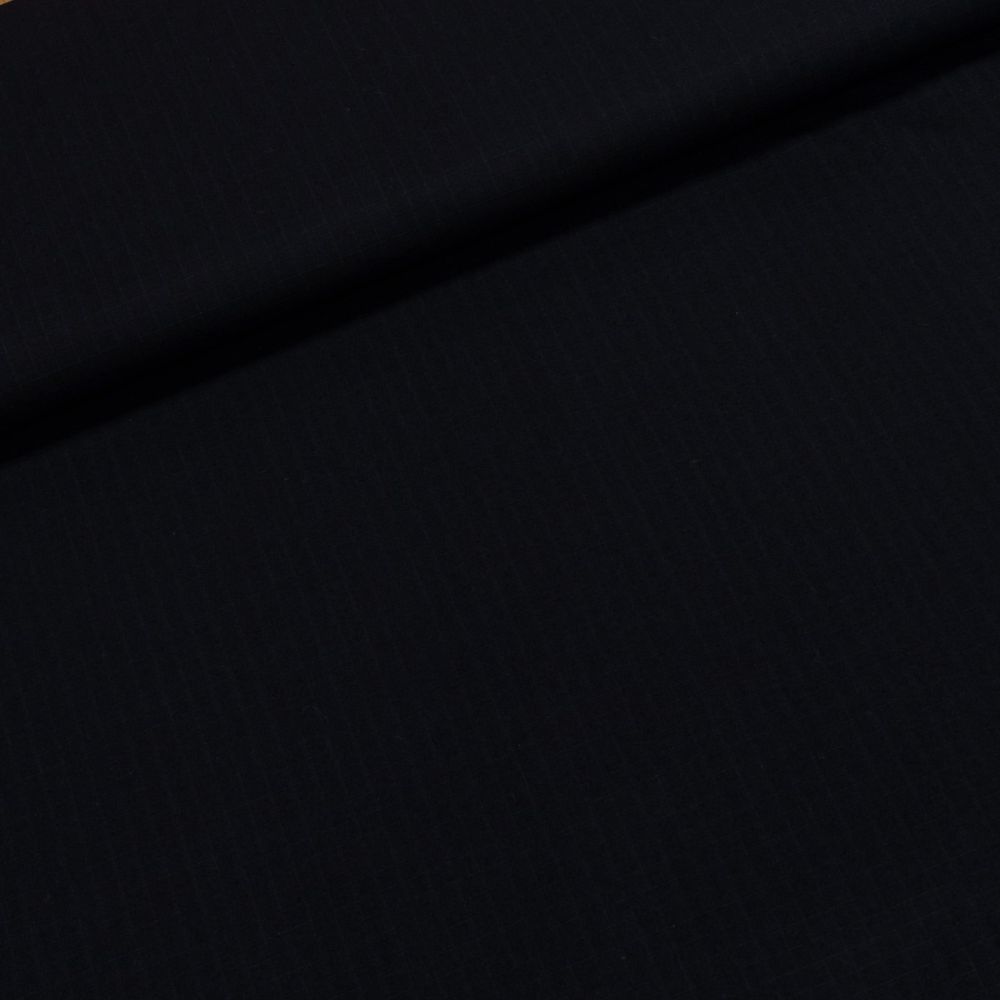 Směsová látka (tkanina) v jednobarevné černé barvě s ripstop strukturou, která ji zpevňuje a brání šíření případných trhlin. Látka je v šířce 150 cm a je vyrobena z 50% bavlny a 50% polyesteru.