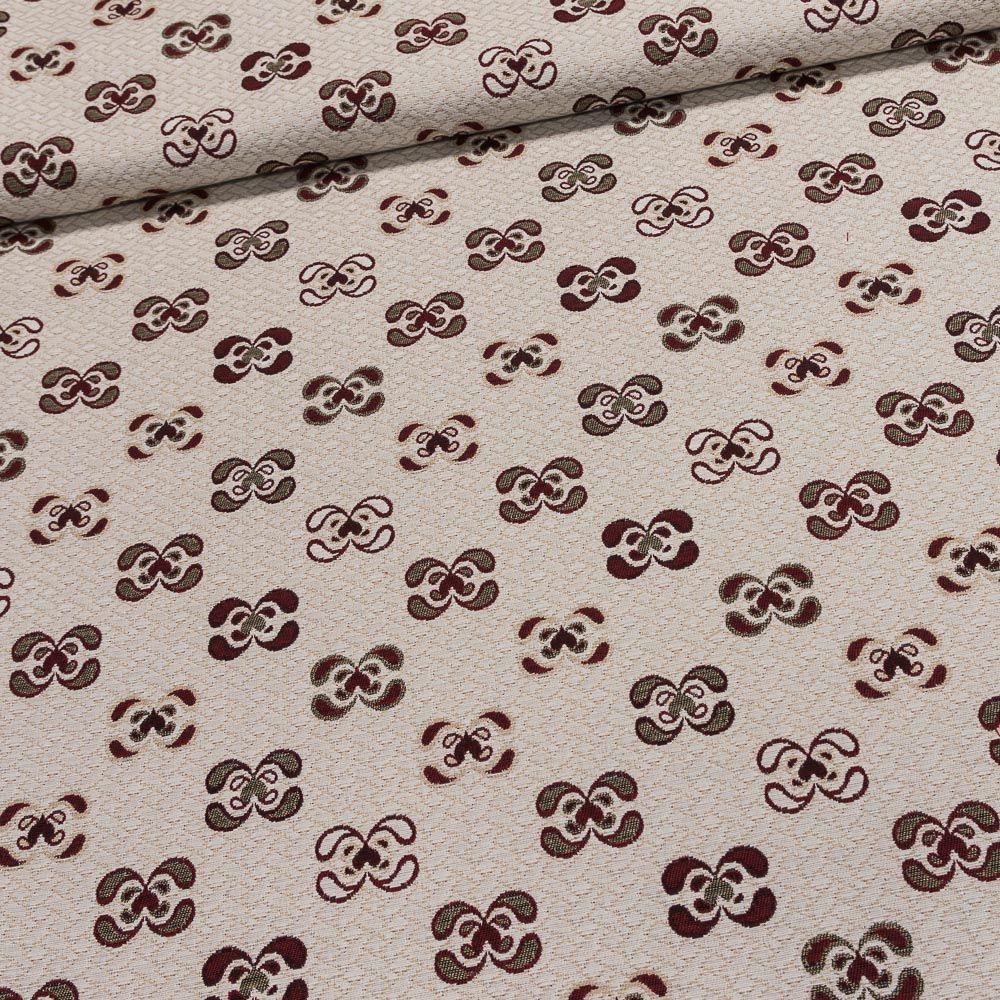 Směsové plátno (gobelín) SUIZA SION 29 vínový ornament na smetanové, š.140cm (látka v metráži)