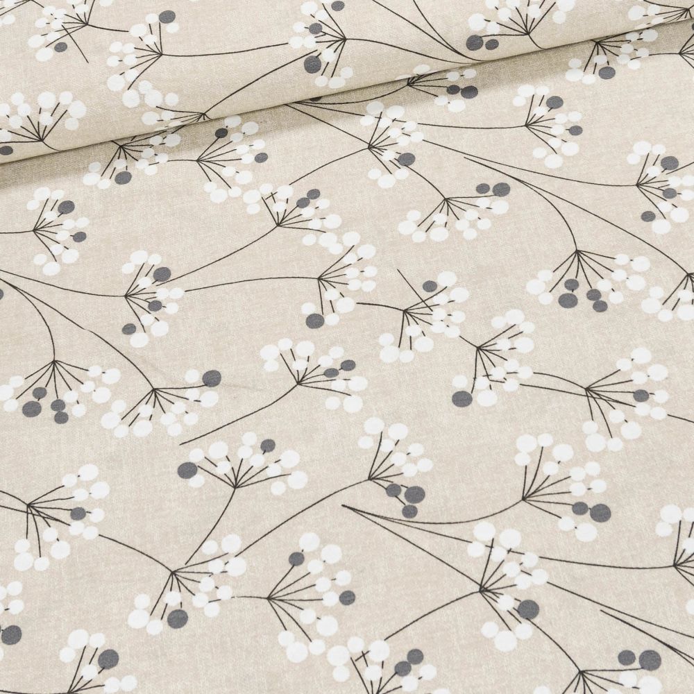 Směsové plátno LUISA BÉŽOVÁ, rostlinky na béžové, š.140cm (látka v metráži)