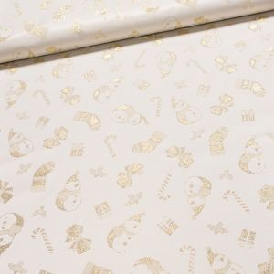 Směsové plátno vánoční DECORA NAVIDAD, skřítci na béžovém dřevě, š.140cm (látka v metráži)