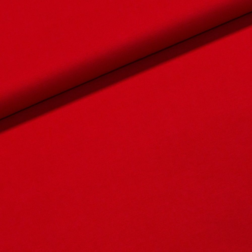 Elastický úplet (jersey) jednobarevný v červené barvě. Úplet je zejména vhodný na šaty, kabátky či sukně. Látka je v šířce 150 cm, vyrobena ze 68% viskózy, 27% polyamidu a 5% elastanu (gramáž 340g/m2). Látka je oboustranná.