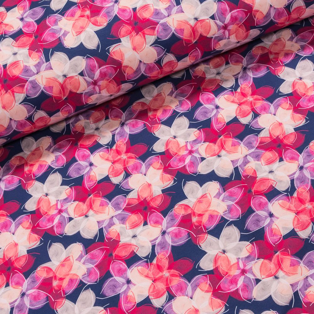 Softshellová zimní látka se vzorem růžových květů na tmavě modrém podkladu je zcela hladká bez vroubkování a je vhodná na volnočasové oblečení (bundy, kalhoty, vesty). Softshell je v šířce 145 cm a je vyrobena ze 100% polyesteru + TPC s voděodolností 10000 mm s prodyšností 3000 g/m2 / 24 hodin. Látka je barevná jen z jedné strany, z druhé strany má jemný chloupek.
