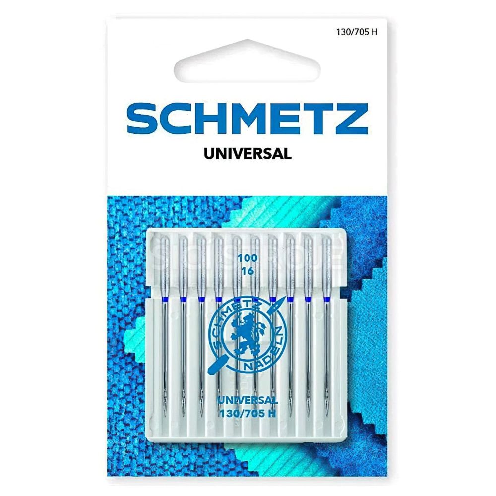 Univerzální strojové jehly Schmetz 130/705 H XES, velikost 100. Vhodné pro domácí šicí stroje a pevnější tkaniny jako džínovina, plátno či silné bavlny. Balení 10 kusů.