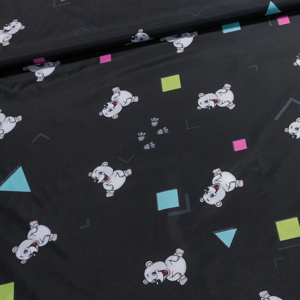 Šusťákovina (lehká kočárkovina) dětská TPU MEDVĚD, černá, š.150cm (látka v metráži)