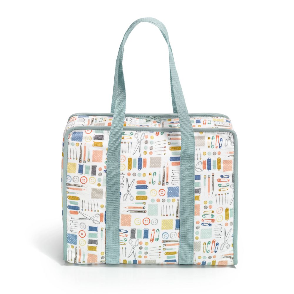 Taška na šicí a pletací potřeby, látková, NEEDLE&THREAD, šicí potřeby, světle modro-bílá, 34 x 26 x 9,5cm